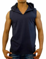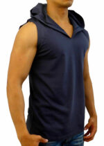 MENS HOODED SLEEVELESS TANK TOP HOOD MUSCLE BODYBUILDING GYM BLUE