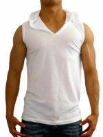 MENS HOODED SLEEVELESS TANK TOP HOOD MUSCLE BODYBUILDING GYM WHITE